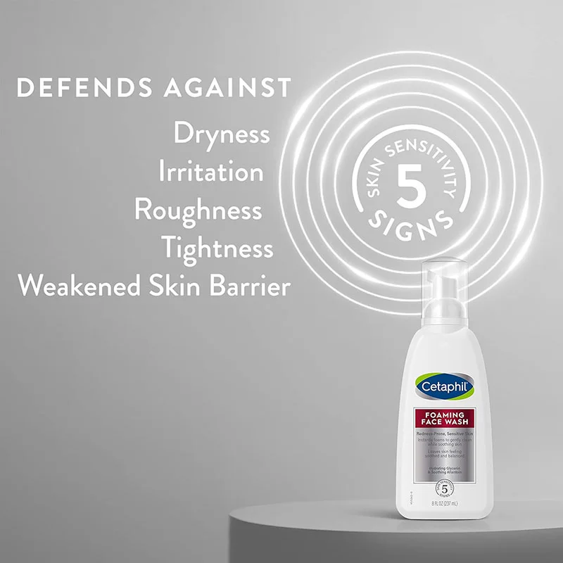 This gentle self-foaming cleanser, formulated with hydrating glycerin and soothing allantoin, removes dirt, impurities and excess oil without over-drying skin. Ideal for sensitive, redness-prone skin. Defends against 5 signs of skin sensitivity including dryness, irritation, roughness, tightness and a weakened skin barrier.