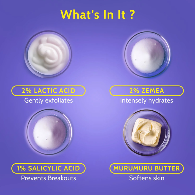 The Chemist At Play Exfoliating Body Wash is a gentle yet effective solution for dull, rough, or bumpy skin. Powered with 1% Salicylic Acid, 2% Lactic Acid, Ceramides, Vitamin E and Murumuru Butter, this body wash for women & men exfoliates dead skin, unclogs pores, fades tan and leaves your skin soft and hydrated. Whether you’re dealing with strawberry legs, body acne, or sun-induced dullness, this tan removal body wash offers visible results with every wash.
