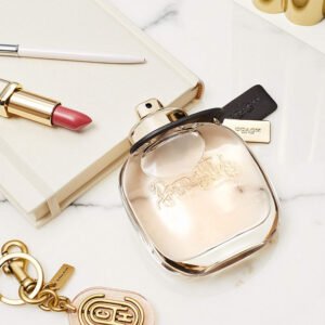 The feminine oval bottle references many of Coach’s iconic codes. Its spray cap is shaped like a gold turnlock, imitating the signature clasp on Coach bags. A hangtag in ebony faux-leather and polished metal add a distinctive finishing touch. A horse and carriage logo, an enduring symbol of Coach craftsmanship, is subtly engraved into the glass.