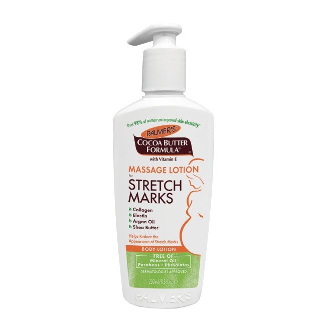 Palmer’s Cocoa Butter Formula Massage Lotion helps visibly improve skin elasticity and reduce the appearance of stretch marks.Pure Cocoa Butter and Shea Butter, Natural Oils,Collagen,Elastin,and Lutein keep skin moisturized and supple for 48 hours allowing skin to stretch more easily.Widely recommened for stretch marks during and after pregnancy or weight fluctuation.This non-greasy lotion is ideal for all over body use,in place of your regular moisturizer.
