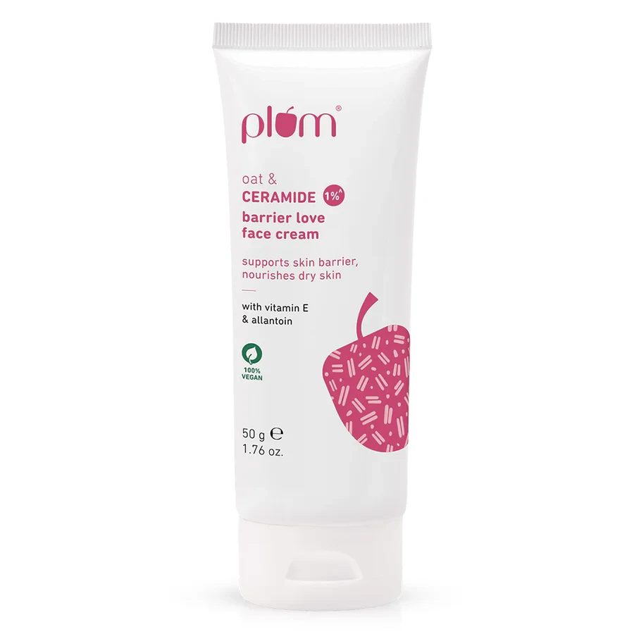 Unlock the door to luminous skin with the Plum Oat & 1% Ceramide Barrier Love Face Moisturizer Cream (50 g). This vitamin E face cream maintains skin elasticity and strengthens the skin barrier. It is a hydrating cream that locks intense moisture in the skin. The Plum face moisturizer is also a soothing cream that calms skin inflammation and redness.