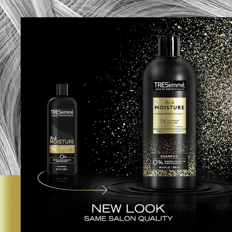 - MOISTURE RICH SYSTEM: TRESemmé Rich Moisture Shampoo for Dry Hair, with Hyaluronic Plex, nourishes strands leaving them feeling hydrated, soft and with healthy looking shine.